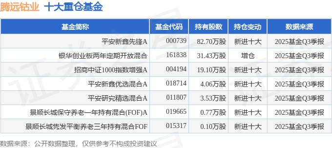 持有腾远钴业最多的基金为平安新鑫先锋A,目前规模为8.51亿元,最新净值2.77(10月28日),较上一交易日上涨0.04%,近一年上涨38.94%。该基金现任基金经理为张晓泉。