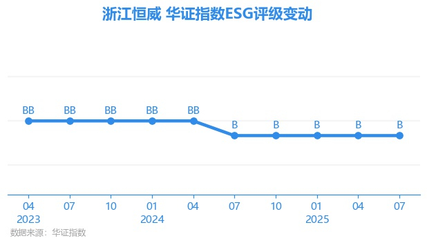 日前,华证指数公布了新一期(2025年7月31日)的ESG评级结果,浙江恒威(301222.SZ)获得B评级(华证指数评级为C起至AAA九档,C为最低档,AAA为其最高一级评级/AA为其第二档),上一期(2025年4月30日)ESG评级为B。本期ESG评级在321家电气设备行业A股上市公司中排名第242(上一期排名第236)。