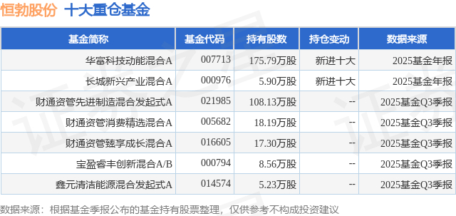 重仓恒勃股份的公募基金请见下表: