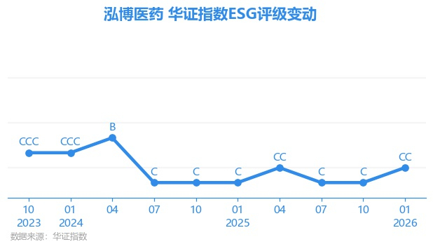 日前,华证指数公布了新一期(2026年1月31日)的ESG评级结果,泓博医药(301230.SZ)获得CC评级(华证指数评级为C起至AAA九档,C为最低档,AAA为其最高一级评级/AA为其第二档),上一期(2025年10月31日)ESG评级为C。本期ESG评级在34家生命科学工具和服务行业A股上市公司中排名第30(上一期排名第29)。