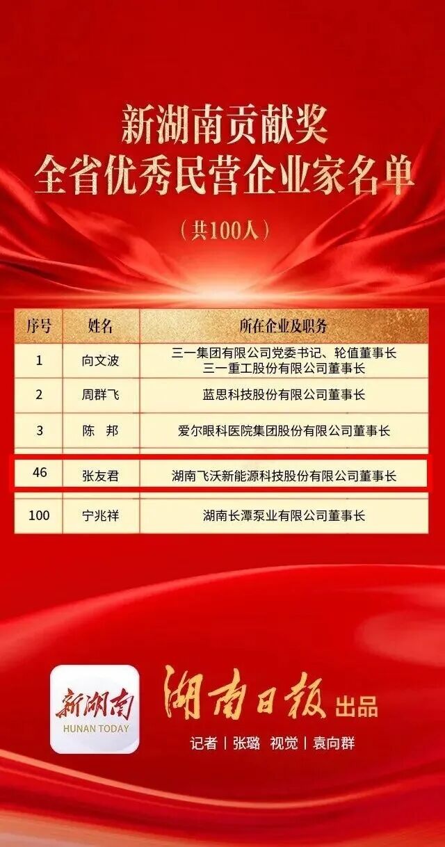 祝贺!飞沃科技董事长张友君获评“新湖南贡献奖全省优秀民营企业家”称号