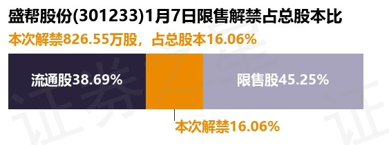 盛帮股份(301233)826.55万股限售股将于1月7日解禁,占总股本16.06%