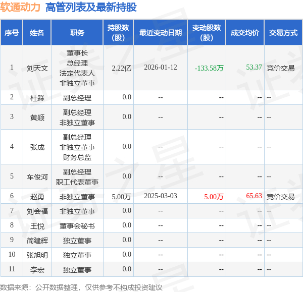软通动力的高管列表及最新持股情况如下: