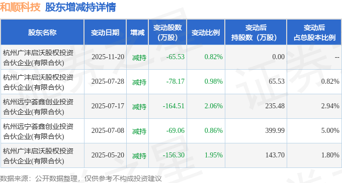 证券之星消息,1月6日和顺科技发生大宗交易,交易数据如下:
