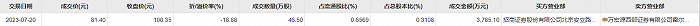 7月20日大宗交易成交46.5万股,成交额3785.1万元,占当日总成交额的19.86%,成交价81.4元,较市场收盘价100.35元折价18.88%。