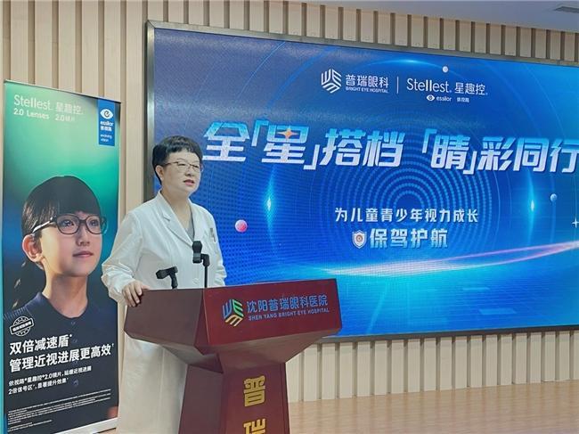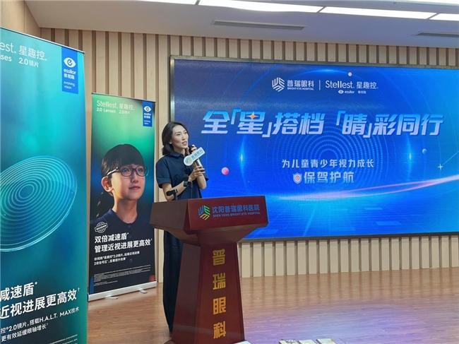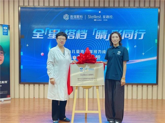 上海依视路光学有限公司王一萍女士与沈阳普瑞眼科医院才娜院长共同为“Stellest星趣控官方认证授权专业验配中心”揭牌,宣布依视路星趣控2.0镜片正式落地沈阳普瑞眼科。