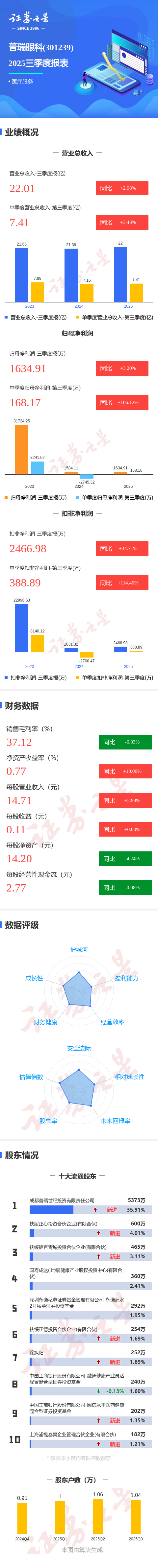 图解普瑞眼科三季报:第三季度单季净利润同比增长106.13%