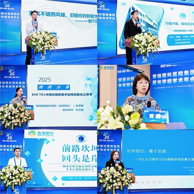 为期两天的学术议程,设置了多个专题板块,覆盖角膜屈光手术、复杂ICL应用、交联联合手术、圆锥角膜与老视矫正等热点领域。来自普瑞集团各医院的医师分享了角膜屈光手术联合快速角膜交联术、ICL术后拱高调控、TICL矫治策略、龙晶PR临床应用等实战内容,融合案例解读与数据洞察,为一线临床工作提供了新思路与新方法。
