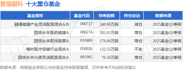 重仓普瑞眼科的公募基金请见下表: