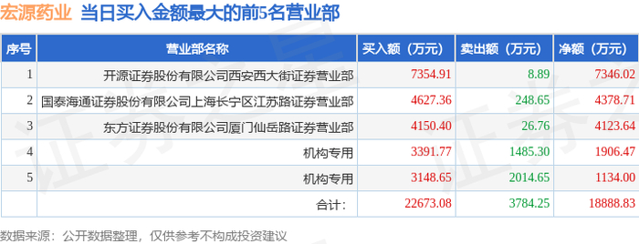 证券之星消息,沪深交易所2025年12月26日公布的交易公开信息显示,宏源药业(301246)因日涨幅达到15%的前5只证券登上龙虎榜。此次是近5个交易日内第1次上榜。