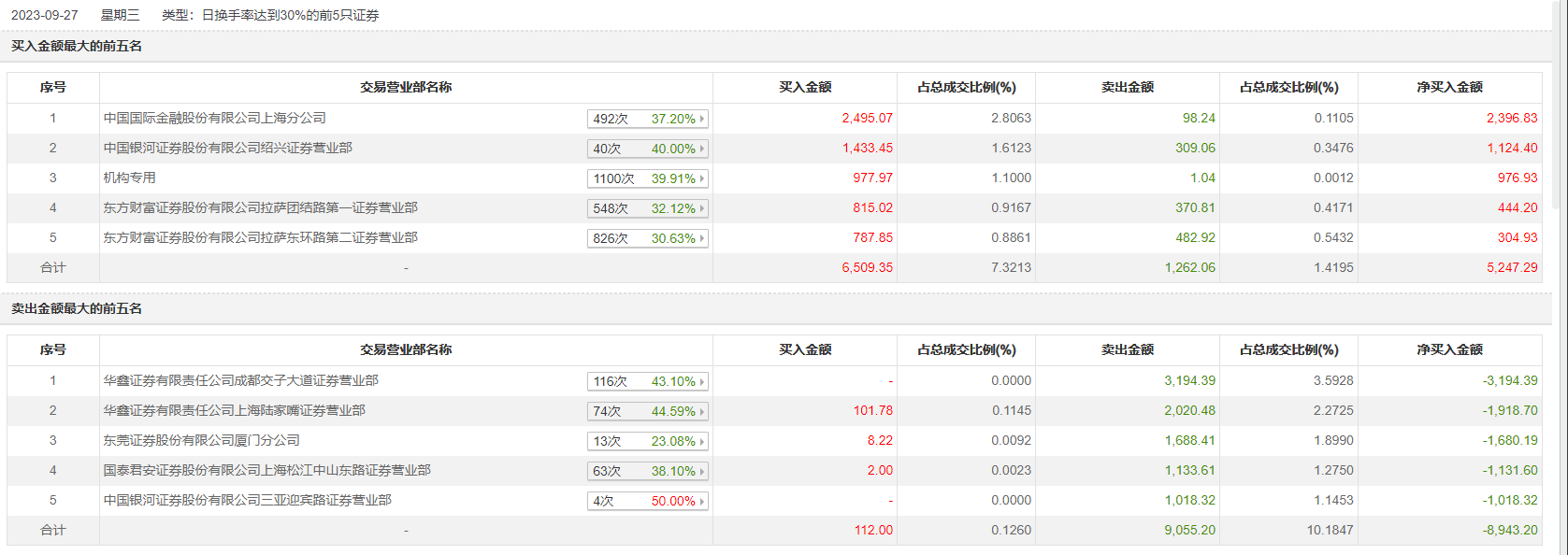 9月27日,威尔高今日跌11.12%,全天换手率达54.64%,振幅达7.87%。龙虎榜数据显示,营业部席位合计净卖出3695.91万元。其中,机构买入977.97万元,卖出1.04万元,合计净买入976.93万元。此外,华鑫证券成都交子大道证券营业部、华鑫证券上海陆家嘴证券营业部分别卖出3194.39万元、2020.48万元;中国国际金融上海分公司、赵老哥(中国银河证券绍兴证券营业部)分别买入2495.07万元、1433.45万元。