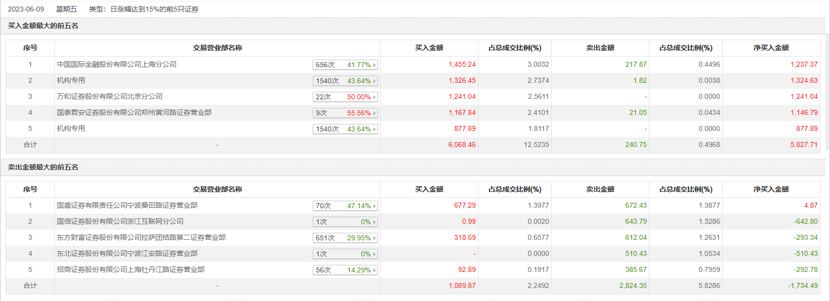 6月9日,同星科技今日涨停,龙虎榜数据显示,上榜营业部席位全天成交1.02亿元,占当日总成交金额比例为21.1%。其中,买入金额为7158.32万元,卖出金额为3065.1万元,合计净买入4093.23万元。