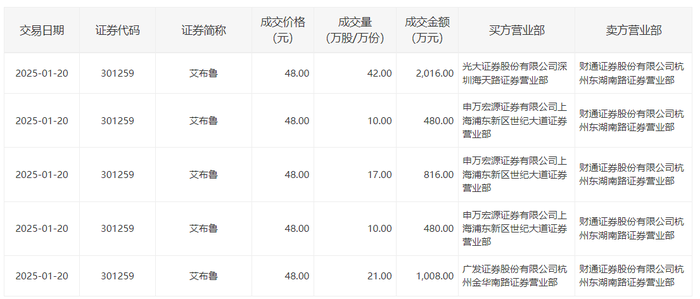 艾布鲁今日大宗交易折价成交100万股,成交额4800万元