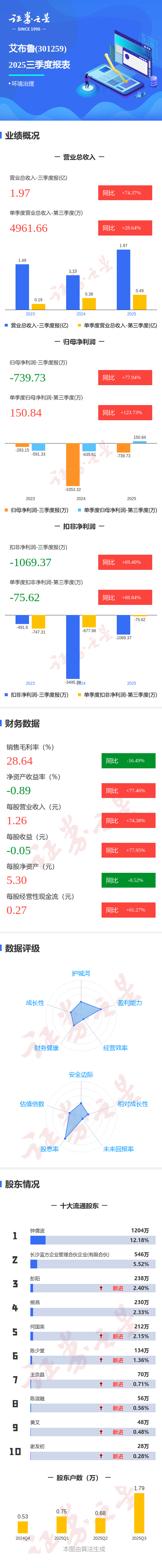 图解艾布鲁三季报:第三季度单季净利润同比增长123.73%