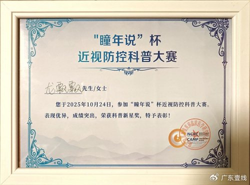 喜讯 | 深圳华厦眼科龙飘飘医生荣膺“瞳年说”杯全国近视防控科普大