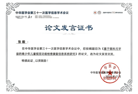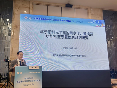 11月6日-9日,由中华医学会、中华医学会医学信息学分会联合主办,湖南省医学会承办的“中华医学会第三十一次医学信息学术会议”在湖南长沙圆满召开。南京华厦眼科医院张毅副院长凭借创新研究成果《基于眼科元宇宙的青少年儿童视觉功能检查康复信息系统研究》入选大会论文发言及成果汇报,成为本次会议的亮点之一。