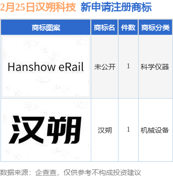 汉朔科技新提交“汉朔”、“未公开”等2件商标注册申请
