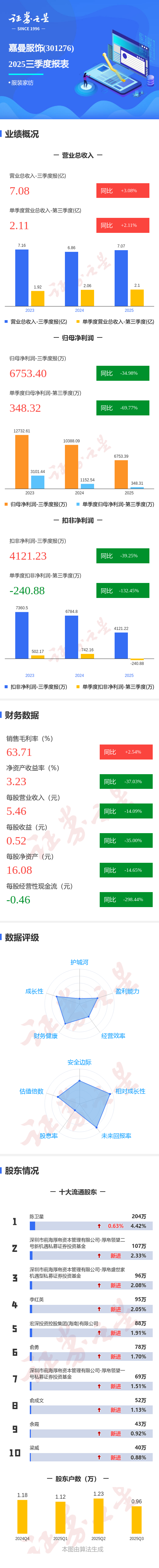 图解嘉曼服饰三季报:第三季度单季净利润同比下降69.78%