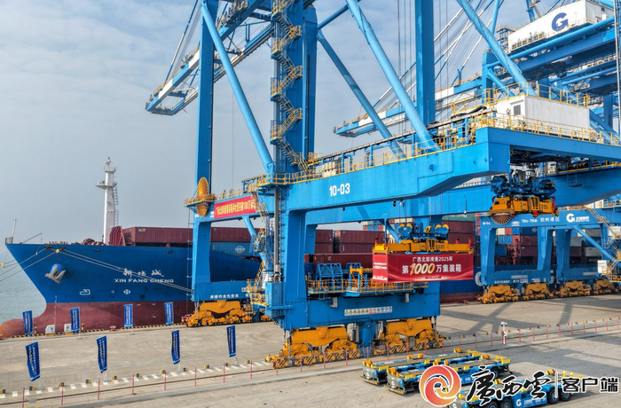 北部湾港,集装箱吞吐量突破1000万标箱。