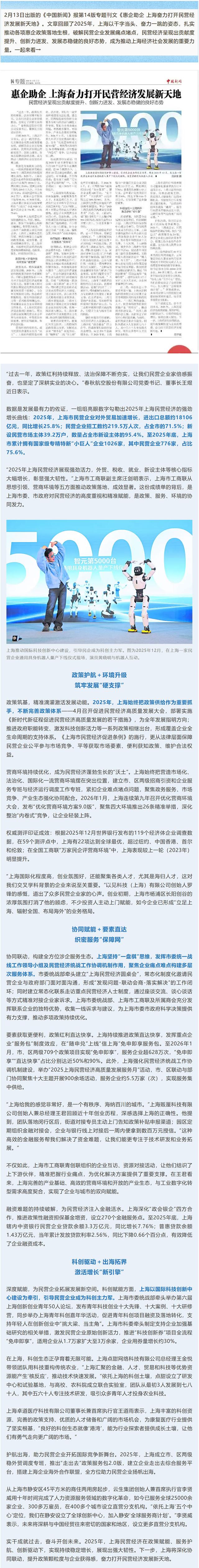 《中国新闻》报专版刊登:惠企助企 上海奋力打开民营经济发展新天地