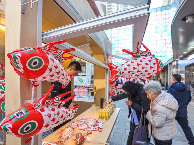 活动围绕“赏灯、吃席、听曲、切磋、赶集”五大板块展开,深度融合中国传统文化与当代审美。其间邀请20余位非遗手工艺匠人,联合60多家零售餐饮品牌,呈现超过20场巡游演艺,并举办为期13天的双档新春市集。