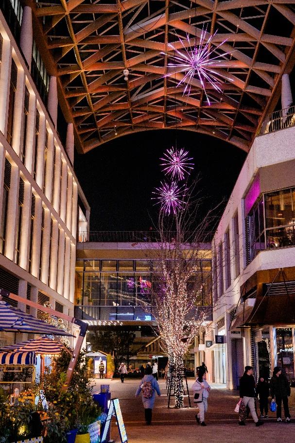新天地时尚一期户外广场:“火树银花”主题赏灯装置。该装置设于新天地时尚一期户外广场,与石库门街区中绵延的民间“花鸟字”灯笼烛彩相融,在青砖黛瓦间,营造出兼具传统韵味与现代审美的特色赏灯体验。