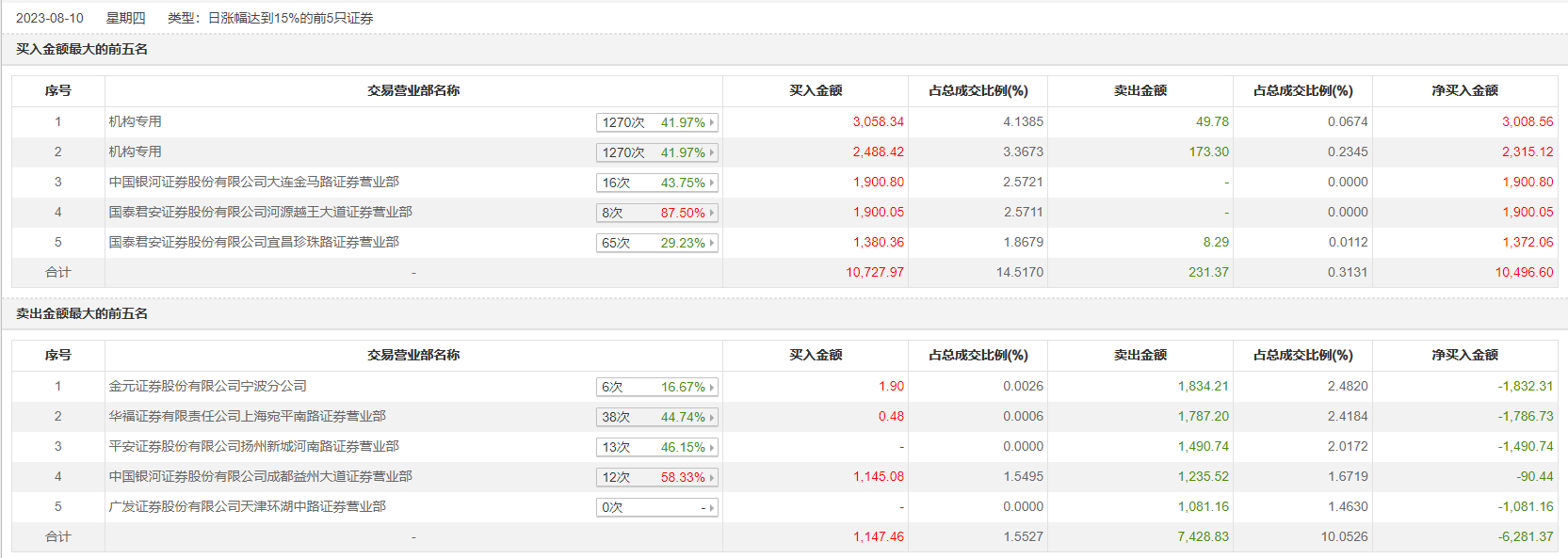 具体来看,机构买入5546.76万元,卖出223.08万元,合计净买入5323.68万元。此外,中国银河证券大连金马路证券营业部、国泰君安证券河源越王大道证券营业部分别买入1900.80万元、1900.05万元;金元证券宁波分公司、华福证券上海宛平南路证券营业部分别卖出1834.21万元、1787.20万元。