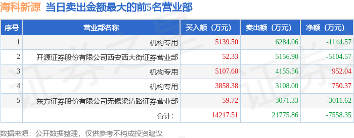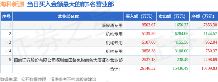 12月29日海科新源(301292)龙虎榜数据:机构净买入557.84万元,北向资金净买入7853.3万元
