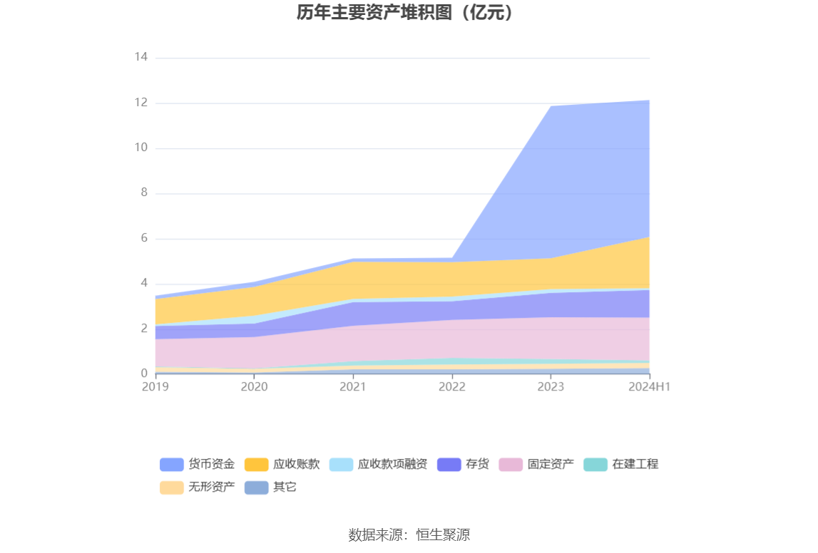 资产重大变化方面,截至2024年上半年末,公司应收账款较上年末增加65.65%,占公司总资产比重上升7.15个百分点;货币资金较上年末减少9.93%,占公司总资产比重下降6.81个百分点;存货较上年末增加12.68%,占公司总资产比重上升0.92个百分点;在建工程较上年末减少46.19%,占公司总资产比重下降0.84个百分点。