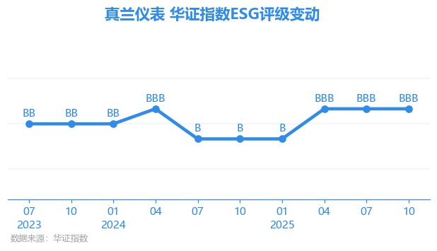 日前,华证指数公布了新一期(2025年10月31日)的ESG评级结果,真兰仪表(301303.SZ)获得BBB评级(华证指数评级为C起至AAA九档,C为最低档,AAA为其最高一级评级/AA为其第二档),上一期(2025年7月31日)ESG评级为BBB。本期ESG评级在531家电子设备、仪器和元件行业A股上市公司中排名第144(上一期排名第131)。