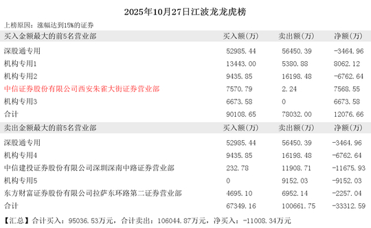 卖出前5席为:深股通专用、机构专用4、中信建投证券股份有限公司深圳深南中路证券营业部、机构专用5、东方财富证券股份有限公司拉萨东环路第二证券营业部。共计买入:67349.16万元,共计卖出:100661.75万元。