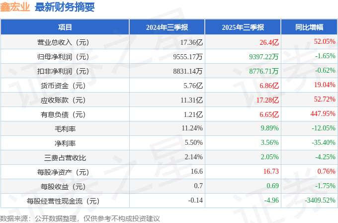 鑫宏业(301310)2025年三季报简析:增收不增利,应收账款上升