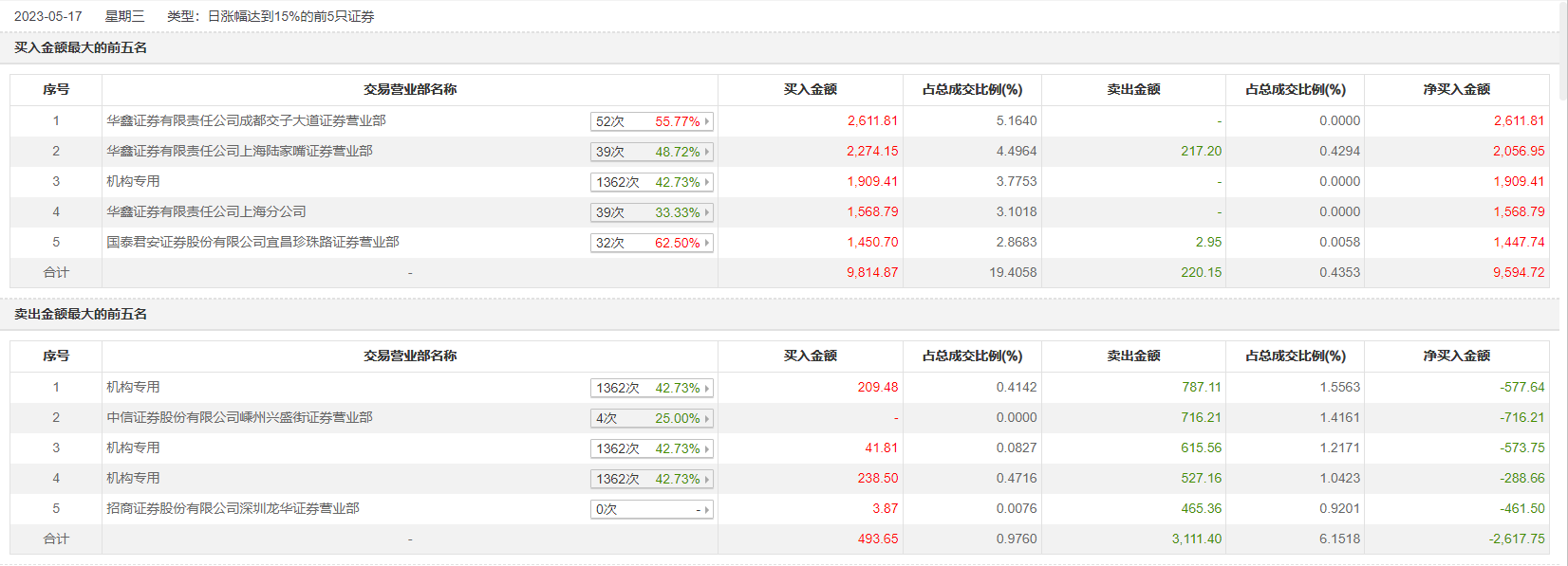 具体来看,机构买入2399.19万元,卖出1929.83万元,合计净买入469.37万元。此外,华鑫证券成都交子大道证券营业部、华鑫证券上海陆家嘴证券营业部分别买入2611.81万元、2274.15万元;中信证券嵊州兴盛街证券营业部、招商证券深圳龙华证券营业部分别卖出716.21万元、465.36万元。