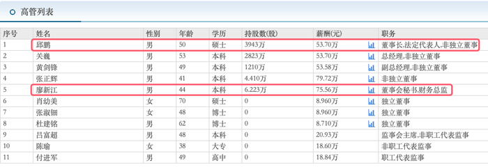 瑞财经留意到,公司董秘廖新江2024年薪酬高于董事长邱鹏。