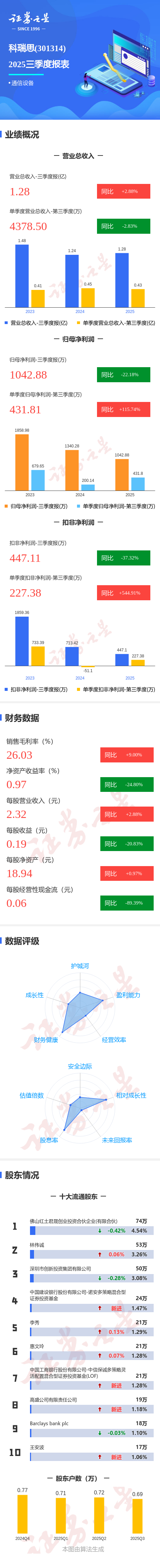 图解科瑞思三季报:第三季度单季净利润同比增长115.74%