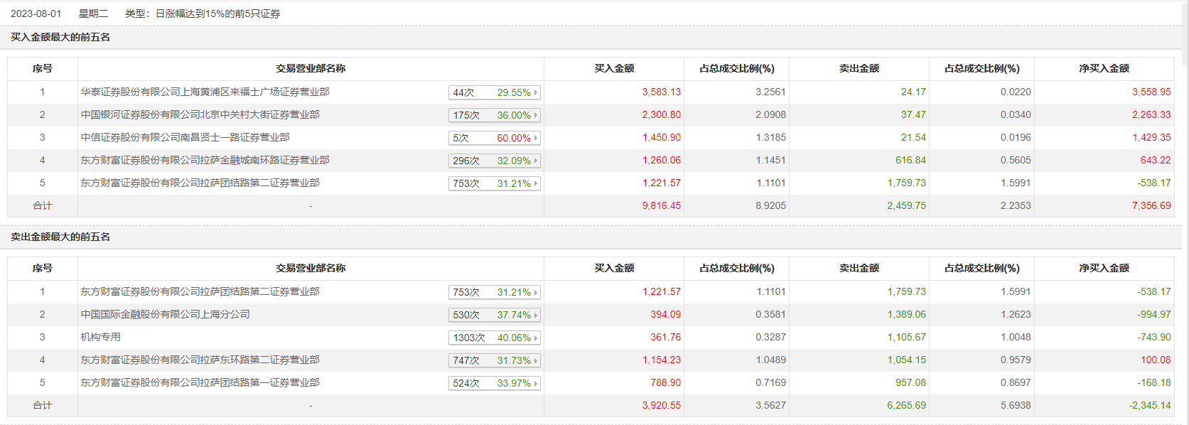 具体来看,机构买入361.76万元,卖出1105.67万元,合计净卖出743.9万元。此外,华泰证券上海黄浦区来福士广场证券营业部、中国银河证券北京中关村大街证券营业部分别买入3583.13万元、2300.80万元;东方财富证券拉萨团结路第二证券营业部、中国国际金融上海分公司分别卖出1759.73万元、1389.06万元。
