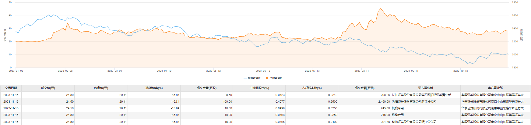 今日大宗交易成交144.49万股,成交额3540.01万元,占当日总成交额的5.85%,成交价24.5元,较市场收盘价折价15.84%。