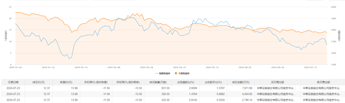 7月23日大宗交易成交1212万股,成交额1.5亿元,占当日总成交额的70.93%,成交价12.37元,较市场收盘价13.99元折价11.58%。