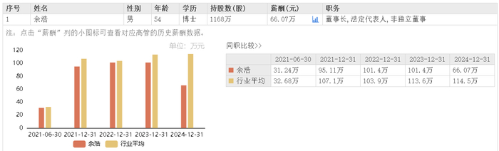 据东方财富网数据,慧博云通董事长余浩2024年所获薪酬为66.07万元,相较上年薪酬101.4万元降薪34.84%。