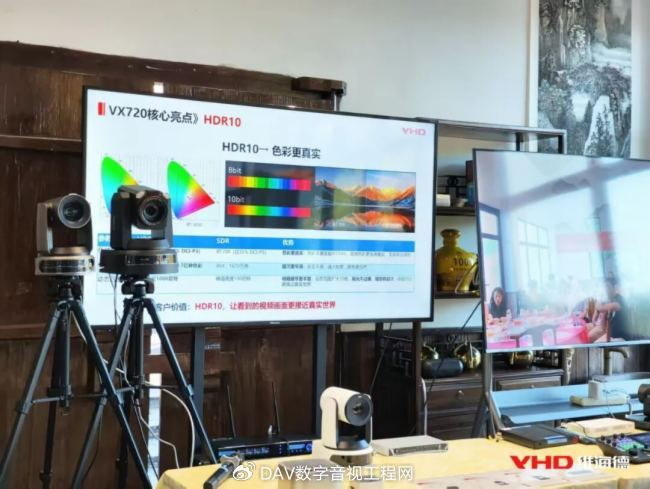 活动现场,维海德演示了VX720云台摄像机的成像表现。作为维海德首款支持HDR10的专业级摄像机,凭借BT.2020广色域、10bit色彩深度和HDR宽动态范围,让画面表现更接近人眼自然感知的真实世界。