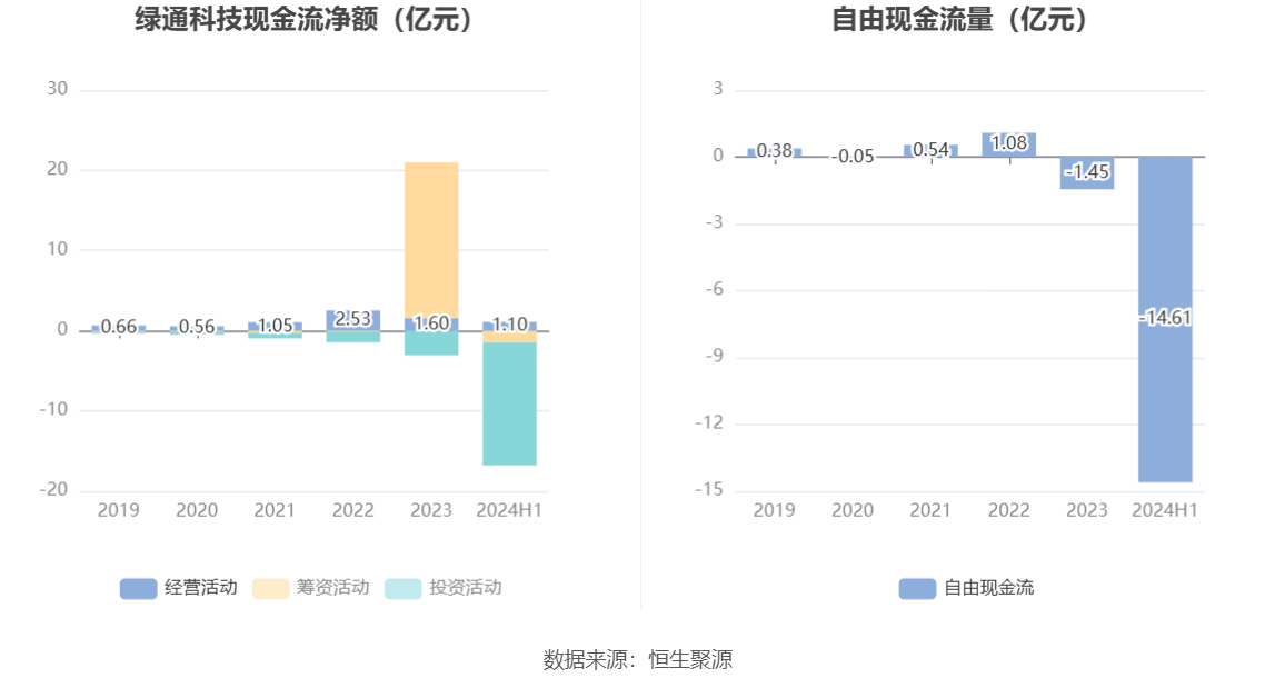 进一步统计发现,2024年上半年公司自由现金流为-14.61亿元,上年同期为-18.87亿元。