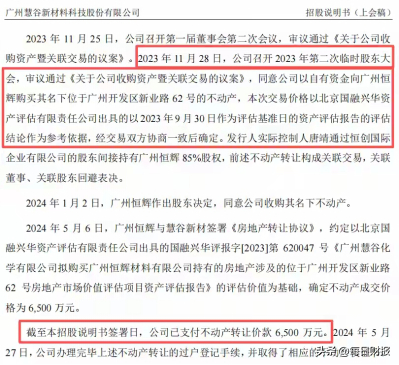 此外,2023年底公司以6500万元向关联方广州恒辉购置不动产,该资产实控人唐靖间接持有85%股权,并在2024年5月过户完成后不久,于7月将所持股权全数转让。