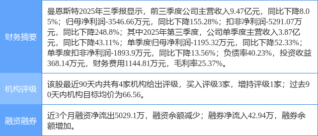 2025年11月3日,东吴证券研究员曾朵红,周尔双,阮巧燕,朱家佟发布了对曼恩斯特的研报《2025年三季报点评:业绩基本符合预期,静待新业务开启放量》,该研报对曼恩斯特给出“买入”评级。证券之星数据中心根据近三年发布的研报数据计算,该研报作者对此股的盈利预测准确度为22.37%。