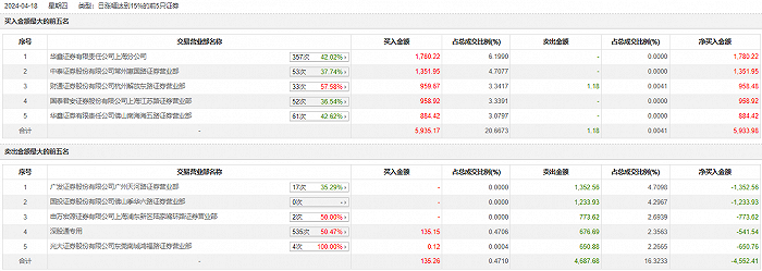 具体来看,知名游资现身龙虎榜,章盟主(国泰君安证券股份有限公司上海江苏路证券营业部)净买入958.92万元。此外,华鑫证券上海分公司、中泰证券常州惠国路证券营业部分别买入1780.22万元、1351.95万元;广发证券广州天河路证券营业部、国投证券佛山季华六路证券营业部分别卖出1352.56万元、1233.93万元。