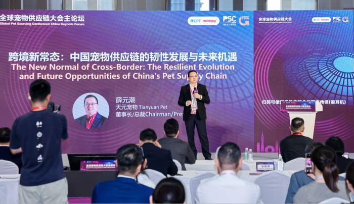 论坛上,天元宠物董事长薛元潮以《跨境新常态:中国宠物供应链的韧性发展与未来机遇》为主题作精彩发言,分享中国宠物供应链韧性发展之路,复盘20余年行业深耕经验,展望中国供应链在全球市场的核心竞争力与未来机遇,引发全场深度共鸣。
