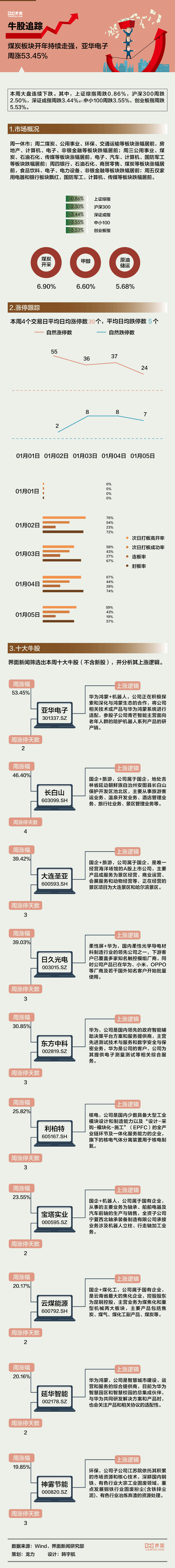 【一周牛股】煤炭板块开年持续走强,亚华电子周涨53.45%