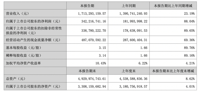 2025上半年,涛涛车业实现营收为17.13亿元,同比增长23.19%;归母净利润为3.42亿元,同比增长88.04%。