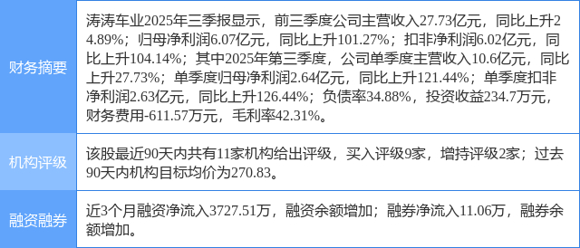 今日涛涛车业(301345)涨5.12%,收盘报213.6元。