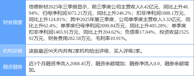 2025年10月28日,东吴证券研究员曾朵红,阮巧燕,岳斯瑶发布了对信德新材的研报《2025年三季报点评:快充需求旺盛满产满销单位盈利逐季修复》,该研报对信德新材给出“买入”评级。证券之星数据中心根据近三年发布的研报数据计算,该研报作者对此股的盈利预测准确度为28.66%。