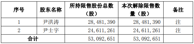3月4日,信德新材(301349)发布公告,本次申请解除股份限售的股东数量为2户,股份数量为5309万股,占公司总股本的比例为52.0516%。本次解除限售的股份可上市流通日为2026年3月10日。解除限售的股东包括公司实际控制人尹洪涛和尹士宇。